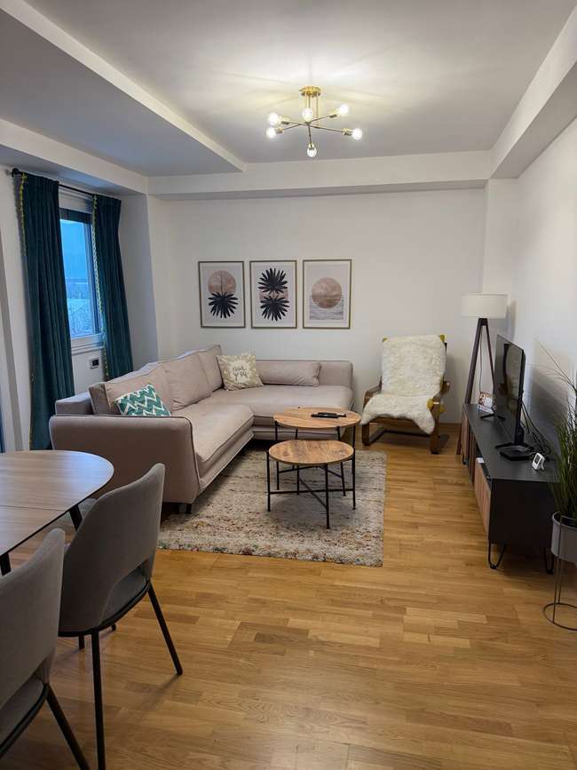 „ДЕЛТА“ Агенција за недвижности, изнајмува наместен двособен стан во Аеродром во близина на поликлиниката Срце и Американ Колеџ. Станот е комплетно наместен со мебел и бела техника.